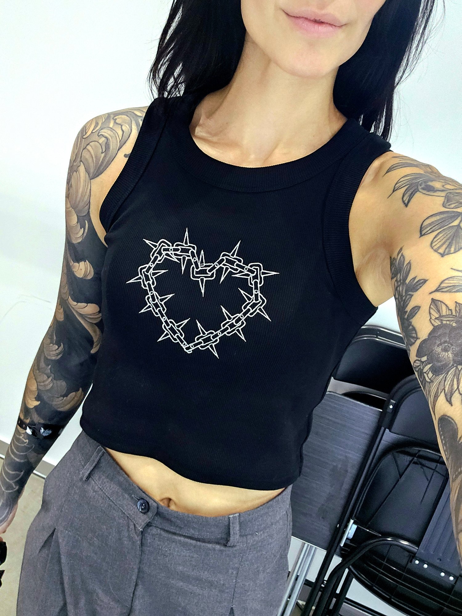 Embroidered chain heart ribbed crop tank