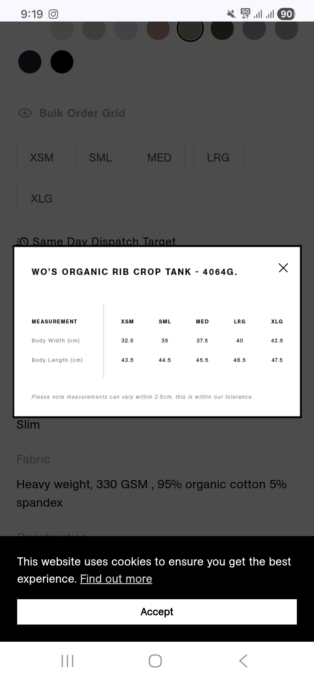 Heavy weight fabric, 330 GSM , 95% organic cotton 5% spandex